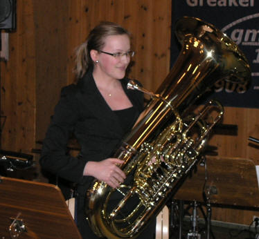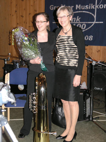 | Ingunn Hammerseth ble akkopagnert av Wenche Olsen | Ingunn Hammerseth 17 år med sin B&S tuba |