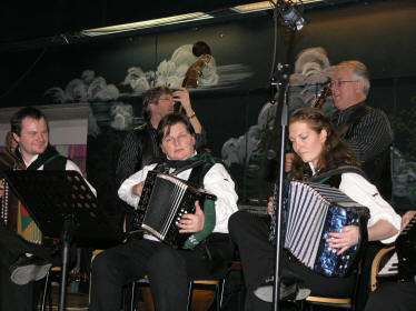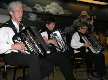 | 3kkspilltrollene fra Oslo var på plass med stor salgsutstilling av trekkspill.... | .....hvor det ble buskspill på gangen med prøvespilling. |