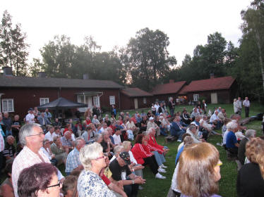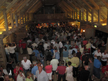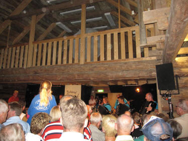 | Godt med publikum som ville høre på Pierre Eriksson | Etter skumringstid trakk folk inn på låvene hvor det til tider nesten var umulig å komme inn... |