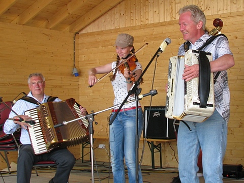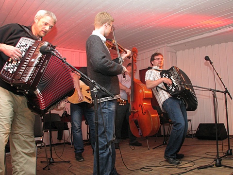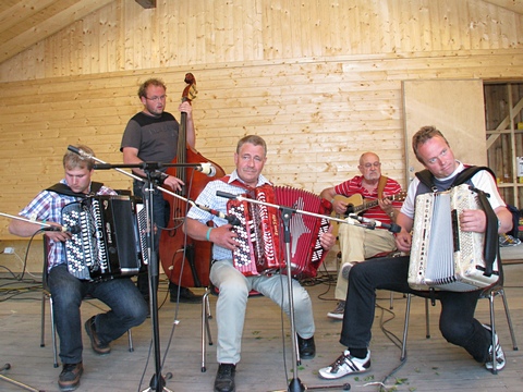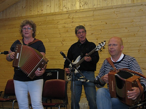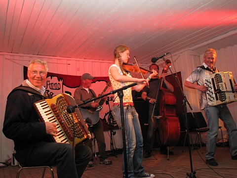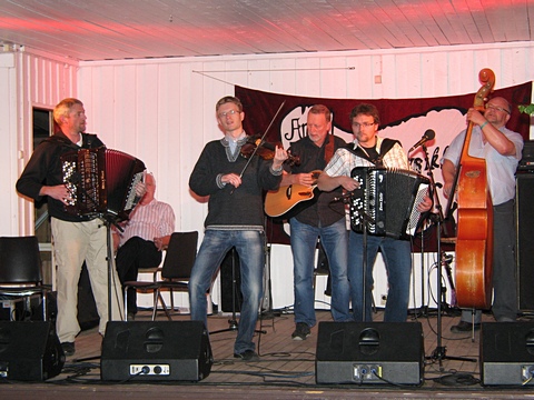 "Østaljom" har ikke noe imot å spille litt når de først er på farten - her det 2. settet på lørdag. Og bare med en gruppe i mellom var Fingarsen og Evje i gang igjen, da sammen med Egil Haugerud på torader. |