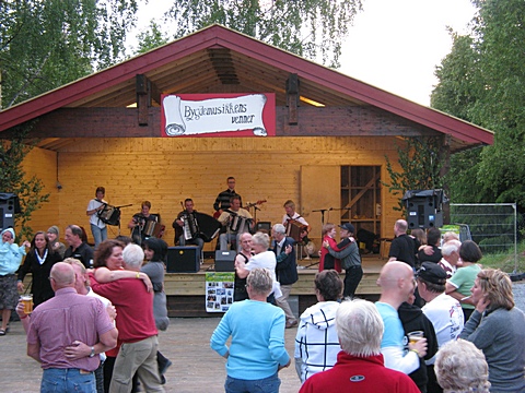 Nyscenen rakk akkurat såvidt å bli ferdig til bruk til festivalen, og en gjeng av Bygdemusikkens venner med Jørn Hansen i spissen hadde gjort en kjempeinnsats med å få opp den nye scenen og dansegolvet. Dette har blitt et enormt løft fra fjorårets litt provisoriske dansegolv inne i serveringsteltet, og tar over fra det gamle gamle dansegolvet som lå nede ved elva og hadde lett for å bli oversvømt av vårflommen og knapt fikk tørket opp til festivalfolket skulle svingt seg på det. |