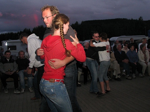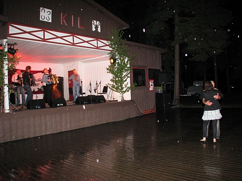 Og heldige var som sagt de som kunne sitte i ly under forteltet noen meter fra dansegolvet ... Lurer på om vi skal prøve å reservere oss denne plassen neste år, i fall ... |