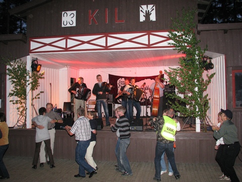 Og nest sist ut - før Røstad's og Einar Olav Larsen satte punktum for den offisielle delen av dansespillingen fra scenene - var Moss Trekkspillorkester. Bassist Vidar Stenseth tok ingen sjanser verken med sveisen eller notene på veien fra campingvogna og opp til scena. Bassen vet vi også ble godt tatt vare på og holdt hele settet igjennom - og til buskspillet etterpå utover i de små timer. Mossingene "bles tur bæljen" så regnet forsvant og publikum vågde seg etterhvert tilbake, før Røstad's fikk pols'tret sistesettet. |