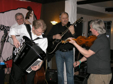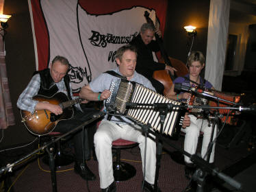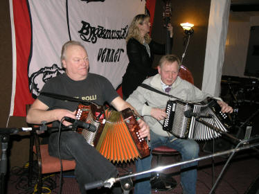 | "Brattibakklaget" fra Ringerike- men ikke hele laget. F.v. Arild Nikolaisen og Mats Lundberg... | ...med Ingeborg Danbolt på kontrabass |
