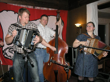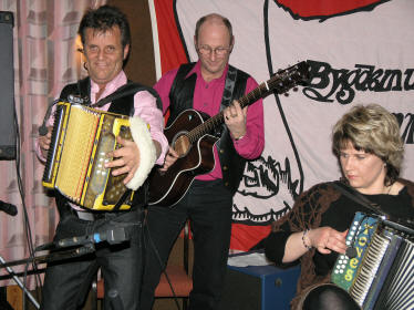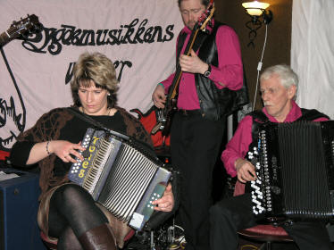 | "Løvås, Haugerud og Fingarsen" - Marianne Løvås og Egil Haugerud... | ... og Oddvar Fingarsen (trekkspill). |
