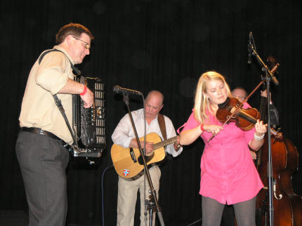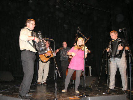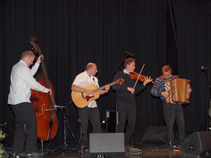 Da det var Tonje og Stein Magnes tur til dansespilling fikk de med seg Jan Visdal (Vågå) på trekkspill, Ole Morten Blankenborg (Skjåk) på kontrabass og Fritjof Eliassen (Otta) på gitar. |