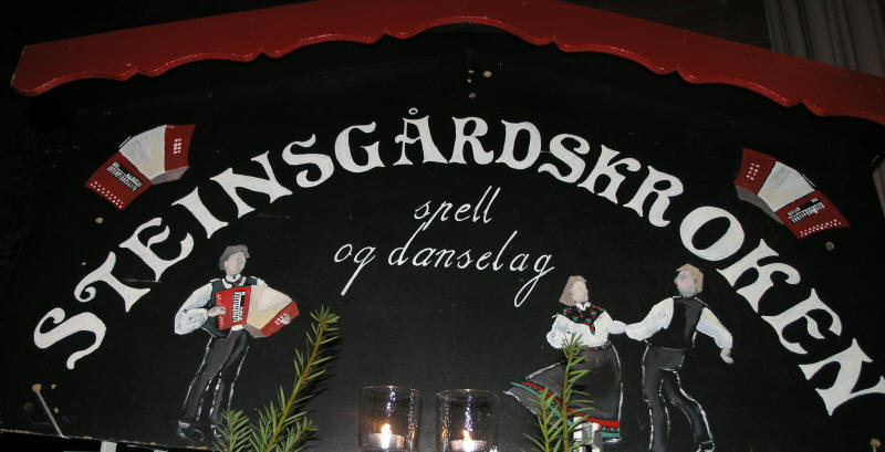 Effektive "Steinsgårdskroker" ryddet salen i en fei etter konserten og dansegulvet ble klargjort. Midtveis ble kvelden avbrutt ved at Spyttmyra tjuvjakt og spellemannslag avla en visitt. Med trekkspill, ukulele og gjeddelurk (rytmeinstrument laget av en hesjestaur, en støvel og et gjeddehue) holdt kara fra Spyttmyrsbråtavangen med Stian Carstensen og Jan Gunnar Røise i spissen, en avansert verbal forestilling der det gjaldt å følge med 1.000% for å få med seg alle poengene. Til slutt fikk vi høre karas bidrag til den lokale jule-CD'n som sikkert selges til inntekt for en "god sak" - nemlig: Raka laka tel jul! Ja, ja - vi sier med kara: Alt som koker lenge nok, blir itandes tel slutt. |