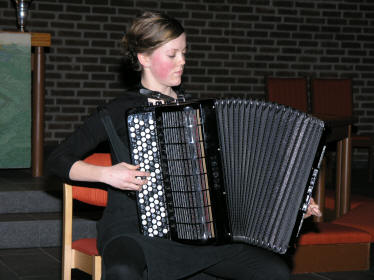 Yngvild utmerket seg tidlig som en lovende trekkspiller, og hun utvikler seg musikalsk stadig videre. Hun hadde en fin framføring av transkripsjonen "Preludium og fuge i fiss-dur" fra Das Woltemperierte Klavier av J. S. Bach. Det atonale originalverket skrevet for trekkspill av A. Nordheim, "Flashing", fremførte hun stødig og interessant. Kveldens siste konsertnummer var 1. og 3. sats av "Russisk suite" av Chenderev, som er så langt fra den atonale verden som man kan komme. Vi husker den godt da Frode Haltli spilte den i TV2's "Talentiaden" i 1991, og tok fagjuryprisen. Yngvild hadde en minst like vakker framføring og høstet trampeklapp - bare så synd at ikke så mange flere fikk med seg denne trekkspill- og korkonserten. Det nytter i alle fall ikke å klage over at det ikke er noe "trekkspillmusikk" å høre lenger... |