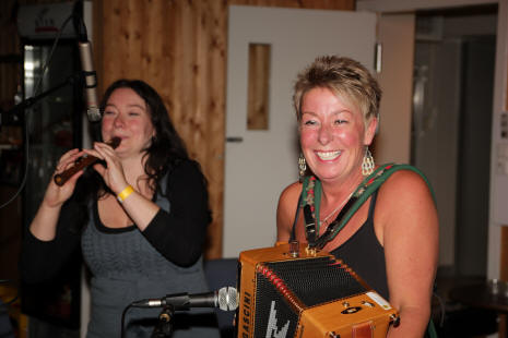 | Ranveig Nordbryhn spiller på fløyter i alle fasonger og er blitt en del av lydbildet til "Bæljtrøkken" | Kim K. Nielsen (t.v.) har tiltrådt "Bæljtrøkken" de senere år. Dag Nordli (t.h.) |