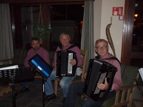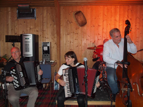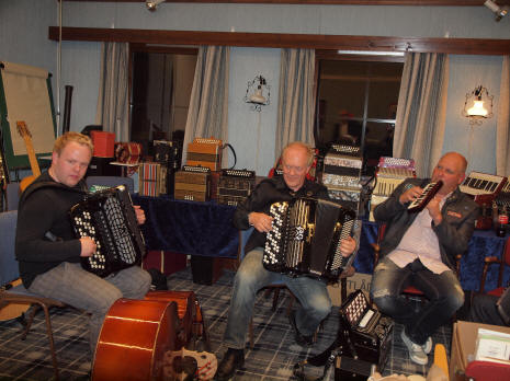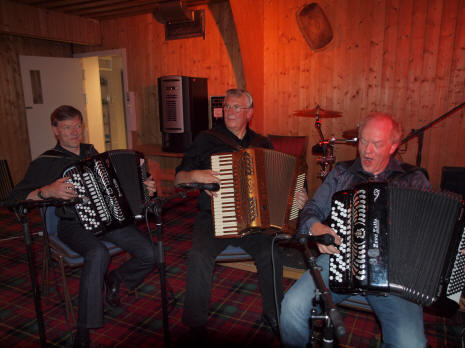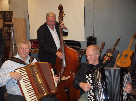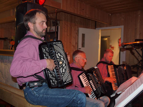 | Aage Sogn's orkester - f.v. Helge Hysjulien, Oddvar Fingarsen og Aage Sogn selv | Geir Aage Sogn på kontrabass må oppleves. Stillbilder kan ikke på noen måte gjengi hans scenefremtreden ;-)) |