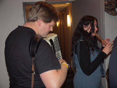 | Sølvy Olsen og Ragnar Kjørven varmer opp før konserten | Ragnar og Sølvy fikk hjelp av Per Bredesen på kontrabass |