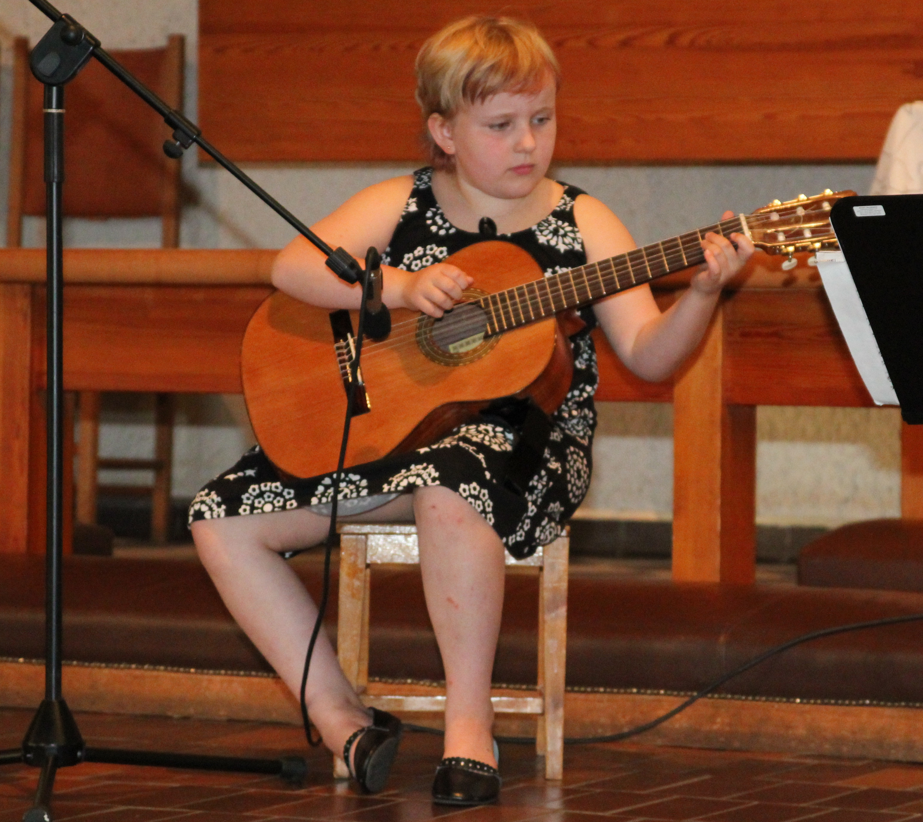 Så var det tid for scenebytte. Lenas datter, Rebekka, er bare 8 år, men har allerede spilt gitar i flere år. Hun fremførte den berømte og høyt verdsatte engelske folkesangen "Greensleeves" sittende dypt konsentrert på en liten, egen medbragt stol. Dernest ble det "familiedebut" i det neste melodiøse nummeret "Pax" av Catherine McMichael. Her fikk hun med seg Jörgen på trekkspill og Lena som da hadde byttet til fiolin.