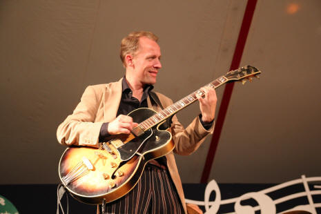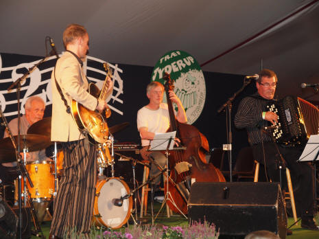 I 2007 var Art Van Damme Quartet hovedattraksjonen i Jyderup. I år var det Kjell Harald Langhaug fra Norge med det samme kompet som skulle fylle denne rollen. Med sikre og erfarne musikere som Jacob Fischer (gitar), Mads Vinding (kontrabass) og Aage Tanggaard (trommer) ble det en fornøyelig liten time for det jazzelskende publikum. |