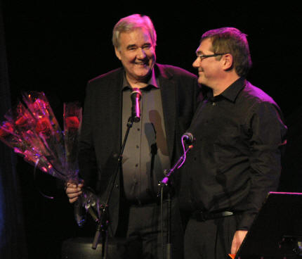 | Lars Arnevig - kveldens konferansier | Konsertarrangør Per Bredesen fikk blomster av en fornøyd konsertutøver - Kjell Harald Langhaug |
