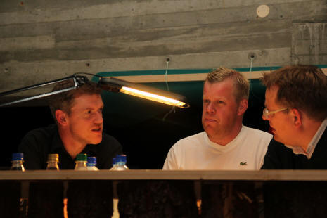 | Eid Idrettshus rommer mange, og under finalen i gruppespill var det nok ca. 1.000 publikummere i salen | Dommere i klassen for gruppespill: F.v. Knut Ivar Bøe, Terje Stensgård og Åsmund Svenkerud |