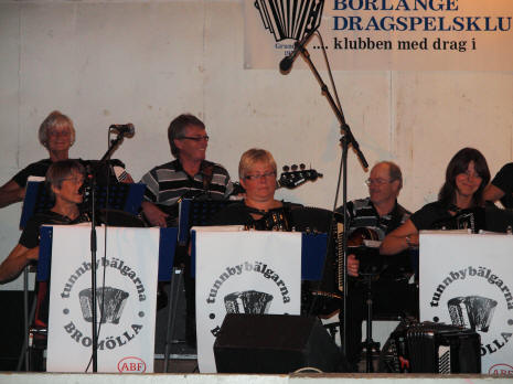 | Anna fra Tunnbybälgarna byttet ut trekkspillet med mikrofonen på "Vår sista dans" og "Nu mår jag mycket bättre" | Svennes gäng fra Borlänge |