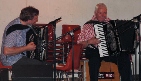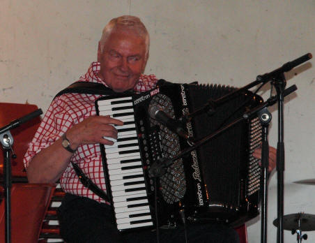 Mange hadde møtt fram for å få med seg Sone Banger (født 1939). Sammen med Göran Persson hadde de en time til rådighet før dansen igjen skulle begynne. De åpnet med kjenningsmelodien til "Grabbarna i 57:an" som ble TV-serie i 1978 basert på en svensk film fra 1935, og valsen er komponert av nettopp Sone Banger. Deretter var det "Kråkspark-duett" før Sone framførte litt solo-jazz. Göran hadde satt sammen et artig potpurri av svenske sangvalser, og han behøvde ikke be publikum to ganger om å stemme i med sang. Musettevalsen "Mella-Mon" hører også med når Sone Banger holder konsert, og han trives fortsatt best på scenen når han får sitte på sin enkle trekkspillkasse av tre. Under en konsert med Sone i Mariestad i 2006 lurte vi på hvor bassisten hadde gjort av seg og det samme spørsmålet stiller vi oss selv etter denne konserten. Han benytter avansert midistyring fra "Bonotron", men har selv full kontroll på bassgangene som såvisst ikke overlates til automatikken alene. Det ble også tid til en pasadoble av André Walter. Avslutningsnummeret ble en riktig fengende "Skjærgårdstango". |