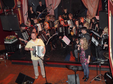 Med et 20-talls ferdige musettearrangementer trengte Bjørstad noen til å utøve musikken. Malm trekkspillklubb tente resolutt på Bjørstads musetteprosjekt. Det gjorde også Moss Spellemannskompani (MSK). Bjørstad har gjennom flere år arrangert musikk for de unge "spellemennene", og de har framført mange av arrangementene på sine årlige nyttårskonserter. I fjor høst gikk de på med krum hals for å øve inn så mange av musettelåtene som mulig. Lørdag 16. januar ble det så invitert til nyttårskonsert i det flotte lokalet Tivoli Amfi i Moss sentrum. MSKs dirigent, Otto Kiss, hadde stått for innstuderingen av stoffet og med seg som solist på nyttårskonserten hadde de selveste Skjalg Bjørstad. |