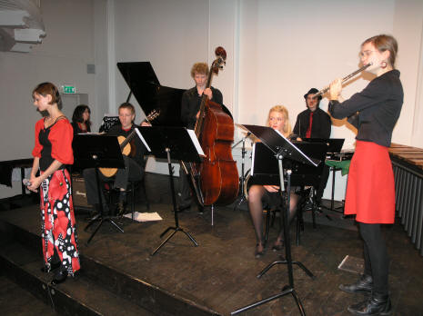 Det var ensemblet TANGABILE som inviterte. Dette er syv unge musikere som til daglig studerer ved Norges Musikkhøgkole (NMH). Naturlig nok fant de hverandre der, som de selv uttrykker det - i de evige korridorer. Samspillet var aldeles utmerket selv om de først startet opp dette prosjektet denne høsten.