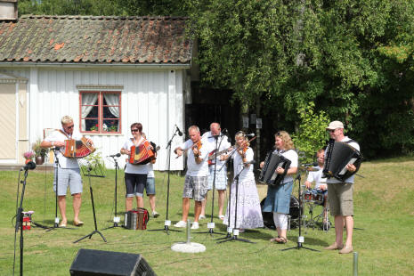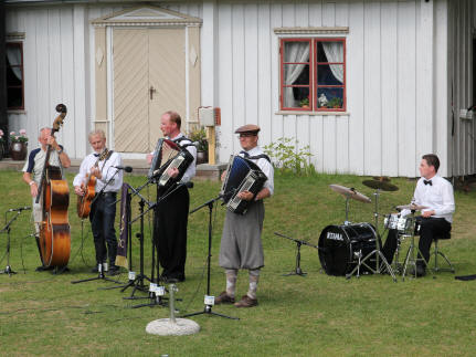 I år var det jazzkonserter innendørs på Vertshuset hvor det også er god matservering, så naturlig nok ble det trangt om sitteplassene. Fredag var det Sören Rydgrens trio som hadde "Jazz vid landsvägskanten". Lørdag var det Asmund Bjørkens orkester som underholdt. Den 77-årige musikeren har så vidt ikke glemt sine kunster hverken på trekkspill eller saksofon. I orkesteret hadde han med seg Ove Bjørken (gitar/fele), Oddmund Finseth (kontrabass) og Oddbjørn Prestvik (trommer), og det ble både brasilske rytmer (Tangerine) og kjente standardlåter fra jazzen.