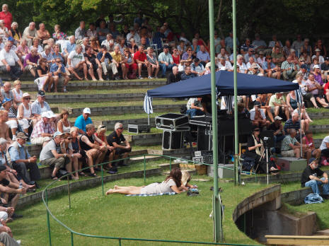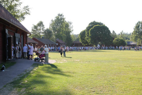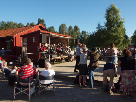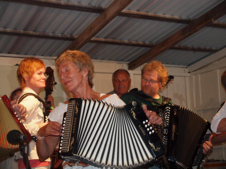 Og dansespilling var det som vanlig nesten ingen begrensning på. Været viste seg fra sin beste sommerside og man kunne vandre fra loge til loge eller fra dansbana til dansbana utendørs. Noen foretrekker å stå rundt å høre på, mens andre sliter ut danseskoene. |