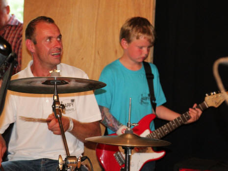| Stian Risbakken (trommer) med god hjelp av Johnsen junior på bass | Idun Östgård |