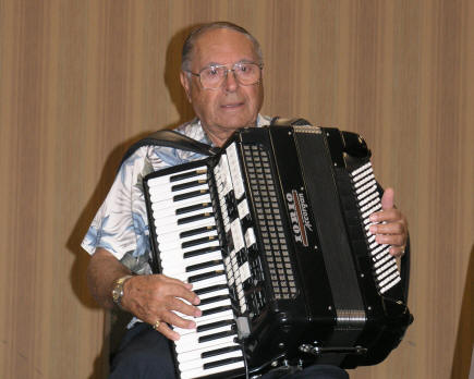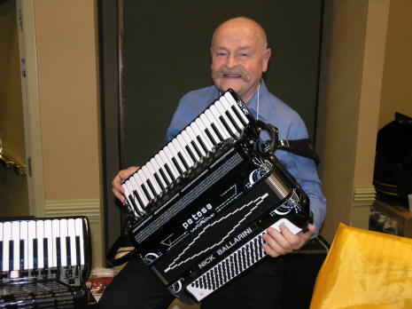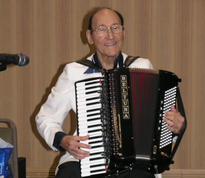 | "The showstopper" Tony Lovello åpnet kveldens konsert - www.accordionmusic.com - 77 år - "pushing 78" | Han har turnert med kjente personer som Debbie Reynolds og Frank Sinatra. Sitat fra programmet: "Don't forget to fasten your seatbelts and find shelter before this tornado tears through the audience. His performance of his signature song, "Malaguena", should be insured by Lloyds of London!" |