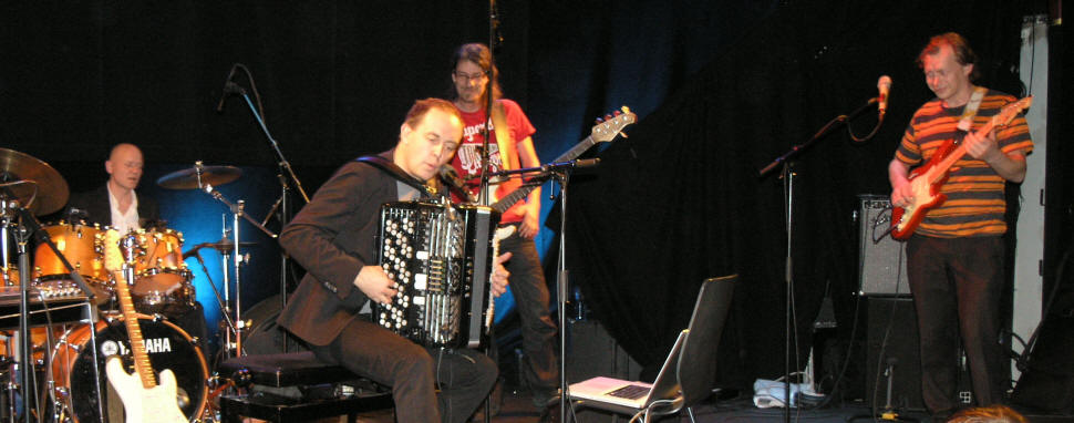 Lørdag 22. oktober var det konsert med Farmers Market på Victoria, Nasjonal jazzscene som er lokalisert midt på Karl Johans gate i Oslo. "Takk for at de ikke sitter heme og ser på tv i kvell", åpnet Stian Carstensen med. Denne helgen var forøvrig som et "Kinderegg" hva gjaldt "trekkspill i Oslo": 1. Farmers Market, 2. Syvers orkester på Rundsnuens høstfest i Nordahl Bruns gate og 3. Juttullaget med dansefest på Riksscenen. Multimusikeren "Stian" kan vanskelig komme bort fra at han blir det naturlige midtpunkt med de mange instrumenter han trakterer, men uten sin medmusikkfeller og tidligere studiekamerater fra jazzlinja på Musikkonservatoriet i Trondheim, er det utvilsomt at de kun samlet utgjør Farmers Market. |