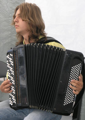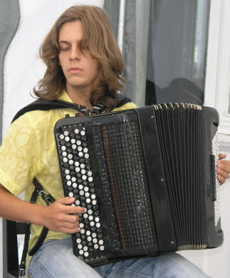 Dermed var det unge Dmitro Mazur som fikk hele musikalske ansvaret denne kvelden. Dmitro er student ved Det Nasjonale Musikkakademi i Kiev, Ukraina (Tsjaikovskijakamediet). Trekkspillinteresserte har trolig lagt merke til den unge gutten på Karl Johans gate i sommer, som har 2 år igjen av studiene på akademiet i Kiev. |
