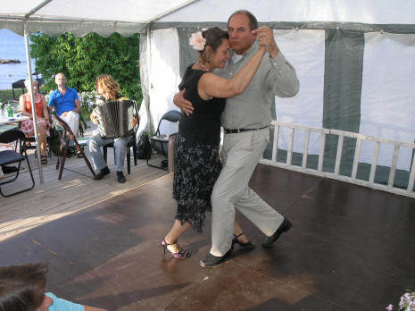 Etter konsertprogrammet var det klart for en liten pause for Dmitro før han spilte til dans for de som ville danse tango, enten på den lille scenen eller barbeint i gresset. |