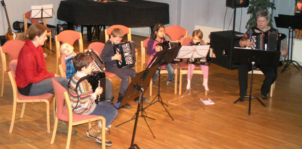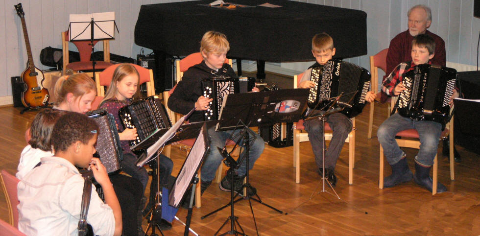 Årets julekonsert for trekkspillelevene på musikkskolene i Bærum og Oslo ble avholdt 12. desember 2011 i Oslo Kulturskoles lokaler på Grønland, Oslo. Siste helgen i oktober deltok disse elevene på seminar på Hundsund skole på Fornebu, hvor de ble inndelt i seminarorkestre. Noe av dette repertoaret som ble fremført på konsert under seminaret, ble benyttet også på julekonserten i tillegg til julemelodier. "Trekkspilljuniorene" har vokst seg til og har nå fått sitt arvtagende orkester i "Mini-Fisharmoniske". Calle Jularbos "Jul-vals" var med på programmet, men dette er jo egentlig slett ingen julemelodi fikk vi vite av Anders Grøthe som hadde arrangert denne for "Trekkspilljuniorene".