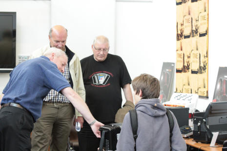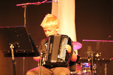 | 1 stk. nervøs mor Hovden og 1 stk. nervøs far Bunkholt | Halgrim Kvello Stake testet ut mulighetene på det digitale Roland V-Accordion på stand til 3kkspilltroll som hadde salgsutstilling |