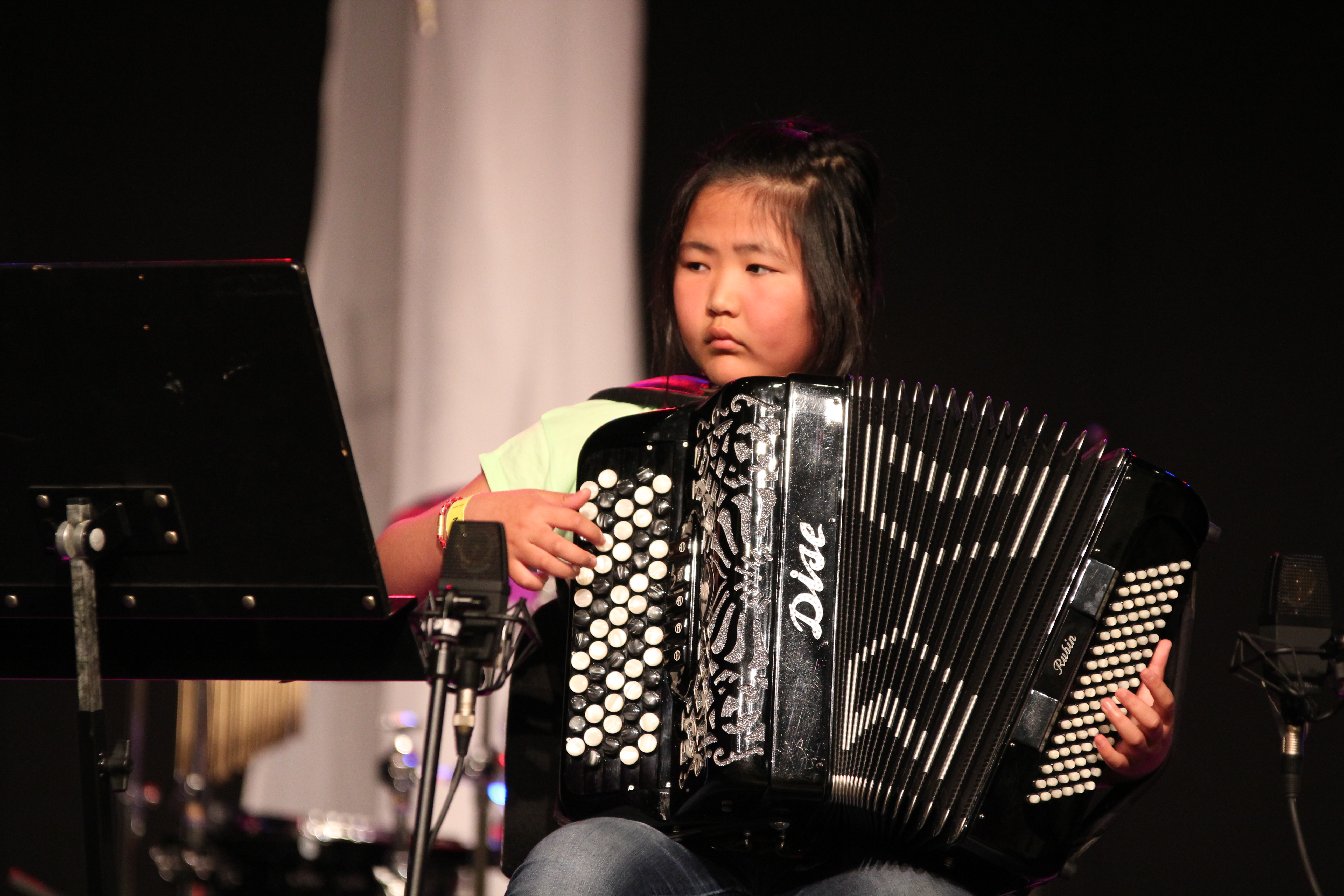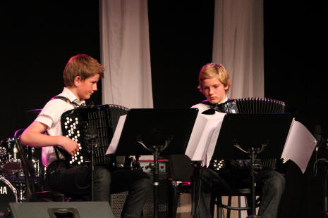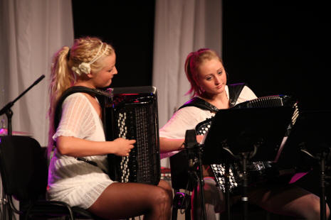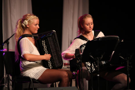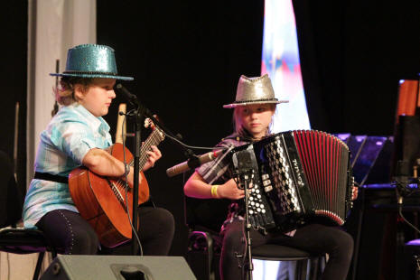 | "Tøffe jenter" - Anna Ouff Grøthe (trekkspill) og Rebekka Rist-Larsen (gitar) er bare ni år, men det er langt fra første gang de deltar på NM | De deltok i "Åpen klasse" og fikk velfortjent både dommer- og publikumsprisen :-) |