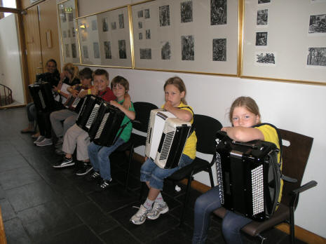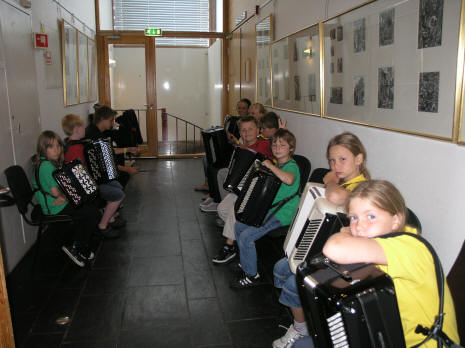 | "Tøffe jenter"...og glade jenter som her nok var litt spente før de skulle inn på scenen | Mini-Salat'n Trekkspillorkester/Salat'n Trekkspillorkester |