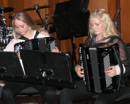 | Duetter f.o.m. 15 år: Oda Kvalsvik Stenberg (t.v.) og Kristina Farstad Bjørdal - "Air", komponist: J.S. Bach, arr.: Gordon Philip - "Scherzo", komponist: John Gart, arr.: Anthony Galla-Rini | Gammeldans rene trekkspillgrupper: "Brit Annes" - "Damenes Vals", komponist: Torstein Hope, arr.: Ronny Kjøsen - "Vrangpålin (reinlender)", komponist: Sigmund Sæther |