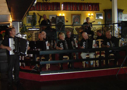 | Moelv Trekkspillklubb - musikalsk leder Svein Smeby t.v. | Vidar "trommis" Smeby sørget for gode rytmer |