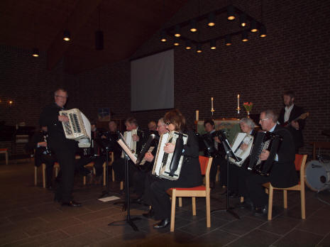 Sokneprest Anders Moen Kvalsnes kunne fortelle at det var et noe annet repertoar vi kom til å få høre denne kvelden fra RTK enn det som Hønefoss Trekkspillorkester kunne tillate seg å fremføre. Nå tror vi ikke at noen den gang heller hadde tatt skade av å høre verken gånglåt, slängpolska eller "Liebertango". "Blå salme" av Henning Sommero var dog et godt innpasset valg, og likeledes "Forgotten dreams" av Leroy Anderson. For øvrig blomstrer kulturlivet på Ringerike som aldri før, og et kulturhus er ganske nylig innviet. |