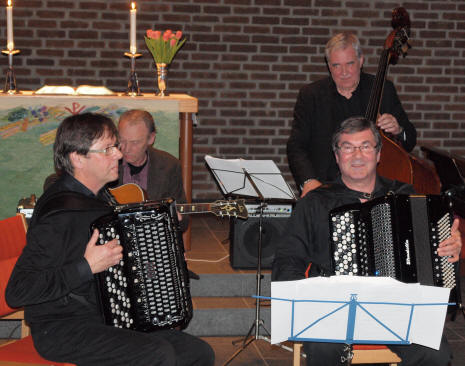 | Frank Andresen og Kjell H. Langhaug (trekkspill) med Tor Bekkelund og Per Bredesen (kontrabass) |