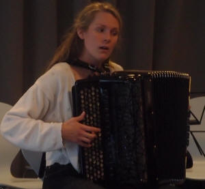 Deretter fikk vi høre soloinnslag. Først ut var Ida Løvli Hidle med dansk samtidsmusikk. Hun studerer for tiden på musikkonservatoriet i København, og innledet med å si at hun skulle spille noe som de små kanskje syntes hørtes litt rart ut, men at man kunne tenke seg at man var ute i skogen og hvilke skumle vesener man kan møte der. Lars Røyseng hadde valgt seg ut en russisk folkemelodi, en hyllest til et snøballtre – «Hey Thou Nice Little Snowball-Tree» arrangert av I. Panitsky.