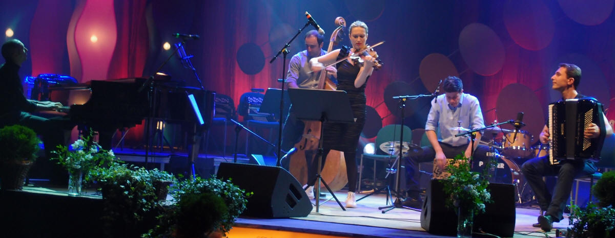 Andre avdeling var viet til musikk fra landene rundt Svartehavet. Her fikk gruppen riktig boltre seg i rytmer fra tyrkisk etnisk musikk i 7/8 og 11/8-takt som ligger deres hjerte nært. De fleste av melodiene var egenkomponerte slik som "Dance for Konstantin" av pianisten Konstantin Kostov og "Tamashi" (Let's play) i diskostil. De avsluttet med det nummer som de føler er noe av deres identitet - noe som starter og ender i Moldova. Dette var tydeligvis noe som falt i smak hos publikum ettersom konserten endte med trampeklapp. Musikerne var nok ikke forberedt på dette og følte seg synlig ydmyket av responsen. Vi håper at de tar turen til Norge om ikke lenge, for dette er musikk som er verdt å få med seg. |