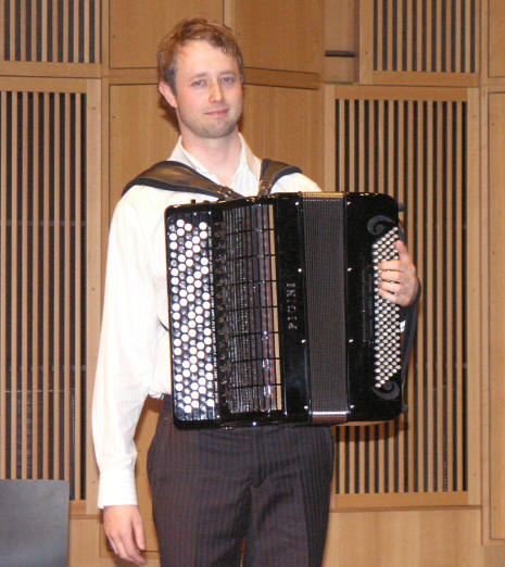 Eilev innledet med Johan Kvandals (1919 - 1999) komposisjon “Sonata” for akkordeon. Den består av to satser og selv om den er et samtidsverk så gjenfinnes det både melodiske og rytmiske elementer fra folkemusikken. Så bar det bakover i historien til Wolfgang Amadeus Mozarts “Andante” KV 616 - opprinnelig en “orgelvals” og en av hans siste komposisjoner da den er datert i dødsåret 1791. Så kunne vi “Looking on Darkness” - slik den danske komponisten Bent Sørensen (1958 - ) forestiller seg det med Eilev som guide. Komposisjonen er skrevet til Frode Haltli i 2001 og hans debutalbum (ECM 2003) bar samme tittel. Danske Ole Schmidts (1928 - 2010) “Toccata nr. 1" satte punktum for første avdeling. Dette er et av de første verk som er skrevet originalt for trekkspill av en anerkjent komponist i 1960 og var tilegnet Mogens Ellegaard. Han har om denne komposisjonen uttalt at “...... og siden har jeg øvet” og vi fikk høre at Eilev hadde øvet nok. Eilev åpnet etter pausen med norske Terje Bjørklunds (1945 - ) “Ritornell” tilegnet Øivind Farmen i 2001.Bjørklund var frem til 1980 en meget aktiv og anerkjent jazzpianist og ble i 1983 tildelt Norsk Jazzforbunds høyeste utmerkelse “Buddy”-statuetten. Deretter har han tilegnet tiden til komposisjon - i det vesentlige av kunstmusikk. Avslutningen av konserten ble viet Johann Sebastian Bachs (1685 - 1750) “Chaconne” fra Partita nr. 2 (siste sats) arrangert av russiske Friedrich Lips som har gjestet Norge en rekke ganger - også denne helgen. Publikum ga ikke slipp på ham før etter et lite ekstranummer - en tradisjonell springleik “Pål Oksel'n” arrangert av Jon Faukstad. Vi ønsker Eilev lykke til med livet videre som utøvende musiker!