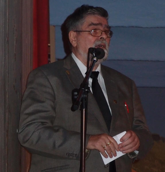 Kjell Sterkerud var kveldens konferansier og bandt det hele sammen med historier tilknyttet hver enkelt komposisjon. Kjell Finholt spiller ikke lenger selv i orkesteret av helsemessige årsaker, men så ut til å trives blant publikum i salen. |