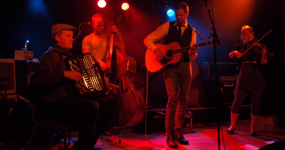 | Fra v.: Stein Magne Eggen (trekkspill), Henrik Hilmersen (kontrabass), Erik Lukashaugen (gitar/vokal) og Tonje Lien Barkenæs (fele) |