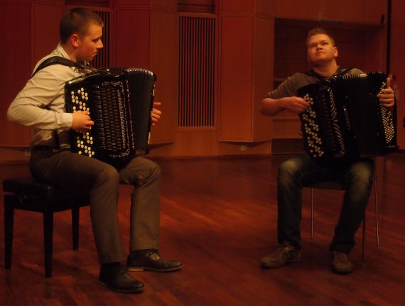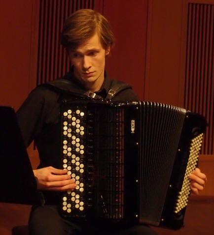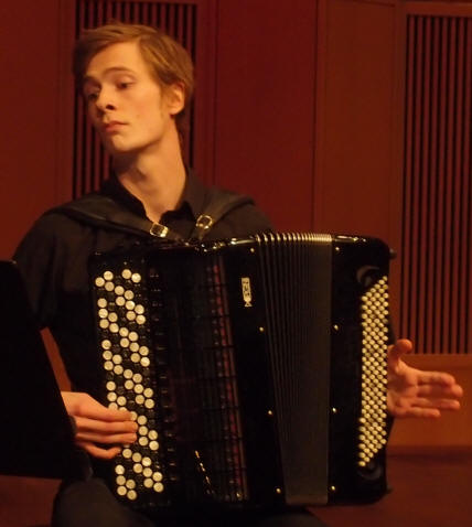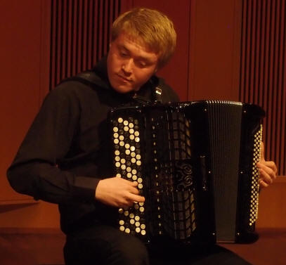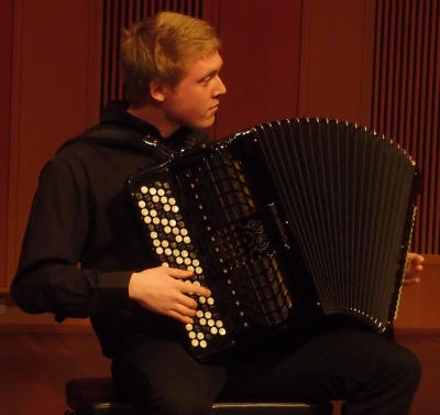 Mandag 15. april var det studentkonsert hvor et bredt spekter av det som spilles på trekkspill ble presentert. Førstemann ut var Andreas Angell som fremførte «Vinterskisser» av Anatolij Kusjakov. Andreas er på sitt andre år i studiet og ble etterfulgt av «ferskingen» Marius Berglund. Han spilte skandinavisk musikk representert ved 2. sats fra «Sonatina Piccola» Av Torbjørn Lundquist og «Spitfire» av Toralf Tollefsen.