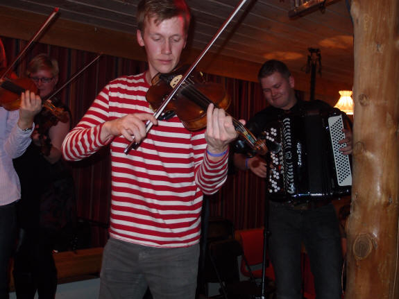 Fredag kveld holdt Bjørn Kåre Odde (fele) og Mads Erik Odde (trekkspill) fra Garmo åpningskonsert på Vågå Hotell. De to brødrene fikk i oppveksten en solid påvirkning av folkemusikk av bestefaren. Dette har resultert i at Mads Erik i dag er 3. årsstudent på folkemusikk (trekkspill) på Norges Musikkhøgskole i Oslo. Bjørn Kåre (23) er også student ved Norges Musikkhøgskole og ønsker «å leve av fela». Han ble også vinner av «Toneprisen 2013» som i år ble arrangert for fjerde gang. Toneprisen er et samarbeid mellom Toneheim, Eidsiva Energi og NRK Hedmark og Oppland for å løfte frem unge musikktalenter fra Hedmark og Oppland. I tillegg vant Bjørn Kåre også Publikumsprisen. Brødrene Odde deltok også sterkt i dansespillingen senere på kvelden der vi observerte dem både sammen med Lom spelemannslag og «Lendmenn».