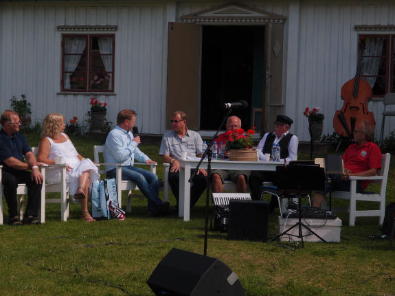 Tord Sölvesson hadde jobben som konsertens konferansier. Expo-Radion var representert ved Jan Olsson. På den hvite intervjubenken foran huset i Gropa satt forøvrig: Kenneth Andersson (leder VFD - Värmlands Dragspelsklubbars Förbund), Mats Hedman (Dragspelsexpo), Jörgen Sundeqvist, Jeanne Eriksson, Walter Eriksson jr. |