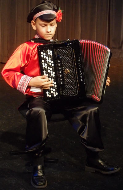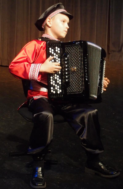 Den neste vesle karen er det vel verdt å merke seg navnet på – Mathias Rugsveen som bare er 10 år (snart 11) som her halvt norsk/halvt russisk og har spilt trekkspill siden han var 5 år. Allerede to år på rad har han vunnet klasse «Solister t.o.m. 11 år». I tillegg har han også kommet hjem med priser fra den internasjonale trekkspillkonkurransen i Pula (Kroatia), Rostov og Stockholm. Mathias spilte hele sju numre for et målløst publikum.