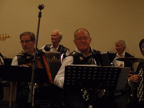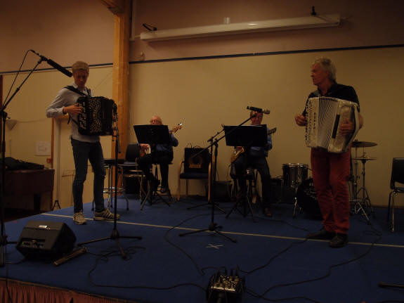 | Gammeldans trenger skikkelig "komp" - her sørger Vidar Stenseth (t.v.) og Odd Kvarmestøl for å holde stødig takt | Moss Trekkspillorkester |