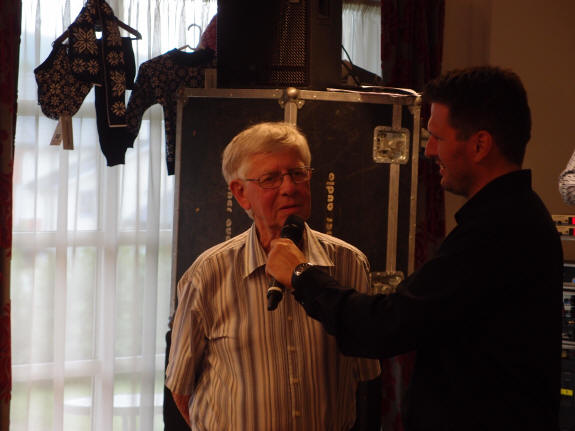 | "Mi4" + Øivind Farmen t.v. Mi4 er en samspillgruppe fra kulturskolen i Selbu. De framførte "Pols etter Johan Kvello" | Arnt Fuglem intervjues av konferansier Ivar Aas |
