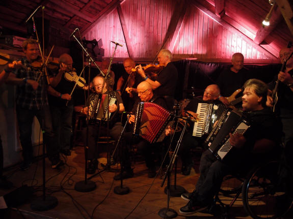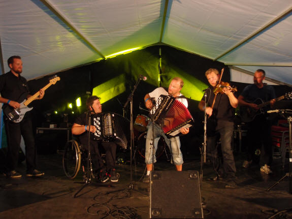 | Odd Inge Moslet (trekkspill t.h.) - bistand fra Øivind Farmen | "Ole Bjarnes" - Ole Bjarne Østby (t.h.) og Svend Aftret |